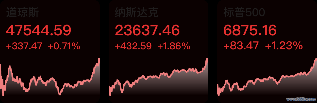 当地时间10月27日,美股三大指数集体收涨,均续创新高。纳指涨1.86%,标普500指数涨1.23%,道指涨0.71%。高通涨超11%,特斯拉涨超4%,谷歌涨超3%,苹果、英伟达涨逾2%,亚马逊、Meta涨逾1%。其中,苹果股价再创新高,总市值逼近4万亿美元。纳斯达克中国金龙指数收涨1.59%,热门中概股多数上涨,小鹏汽车、小马智行涨超6%,百度涨近5%,金山云涨超4%,京东、爱奇艺涨超3%。